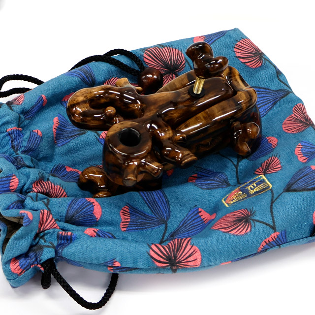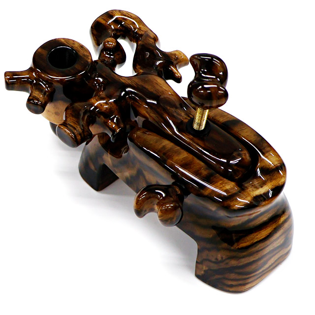 天然素材の色や形が魅力の創作玉置用大砲万力です。