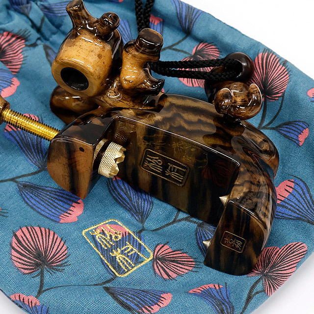 松村作 島根県産 黒柿(縞) 大型 玉置用大砲万力