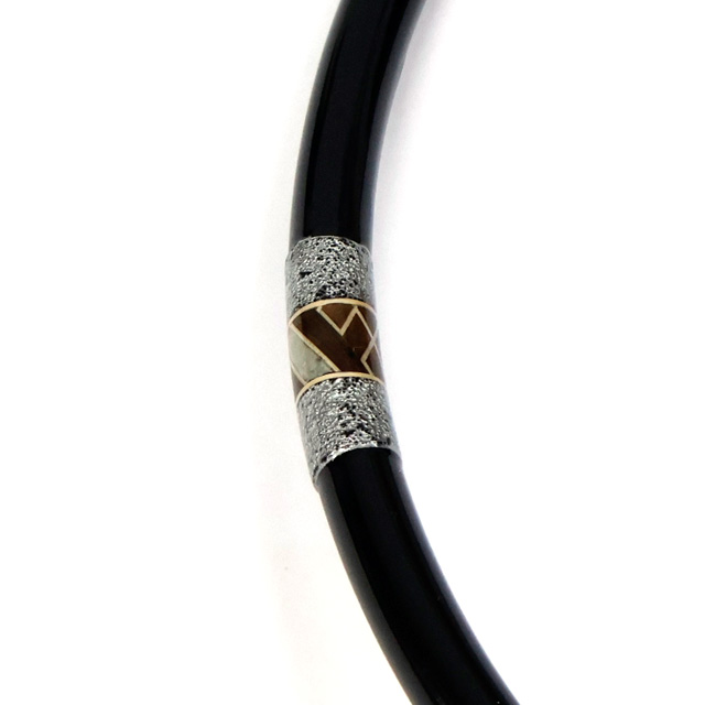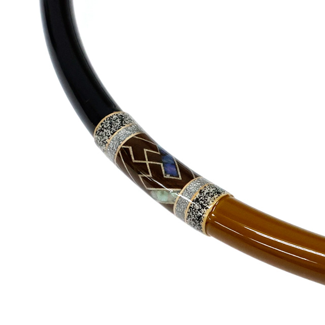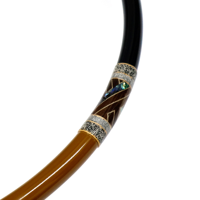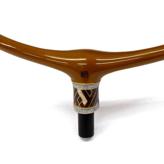 箱根畑宿の寄木細工職人とのコラボで紗綾の紋様の一部に螺鈿を入れ仕上げました。