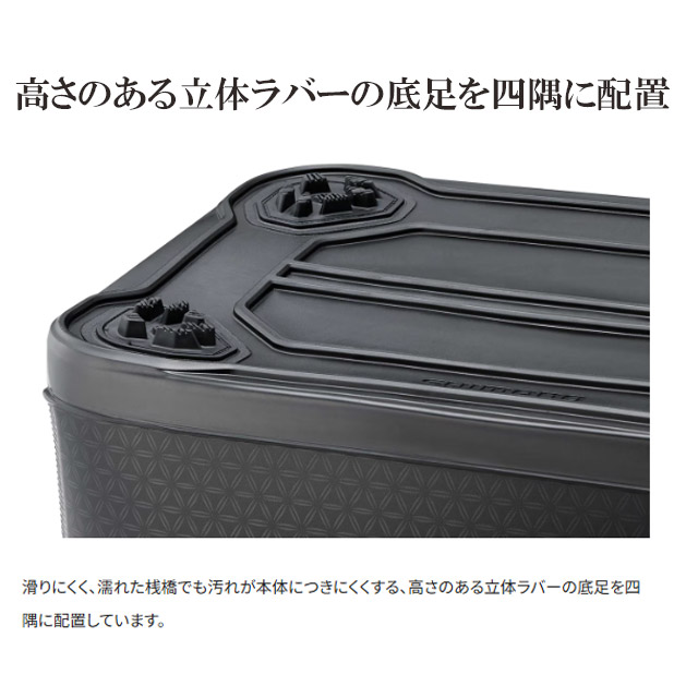 滑りにくく、濡れた桟橋でも汚れが本体につきにくくする、高さのある立体ラバーの底足を四隅に配置しています。