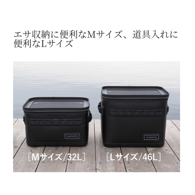 道具入れ等に便利な46LのLサイズ、エサ収納等に便利な32Lの