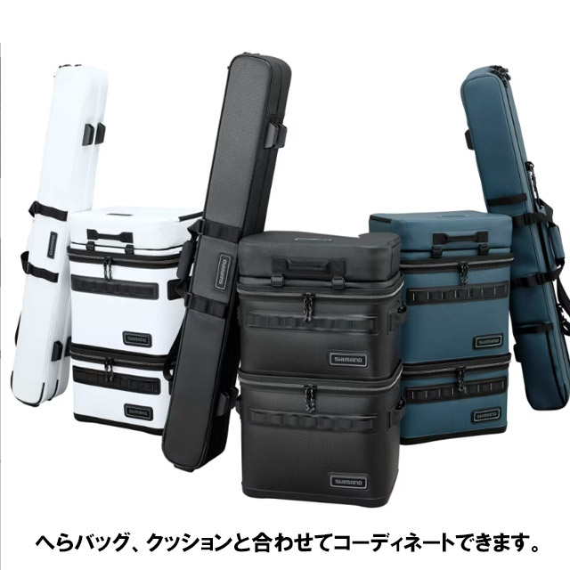 UHへらバッグ、へらロッドケース(別売:BR-541Z )、へらクッション(別売:BA-A41Z)の3点セットすべての本体部に採用しており、