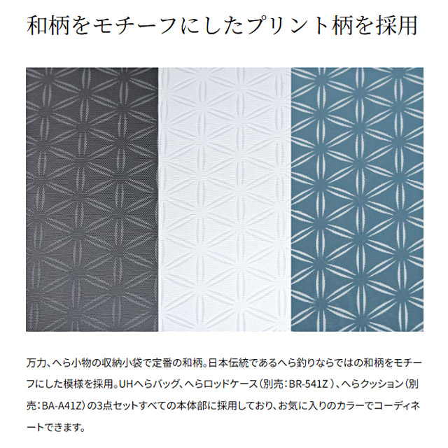 ・UHへらバッグ(別売: BK-541Z)とコーディネートできる生地色・プリント柄