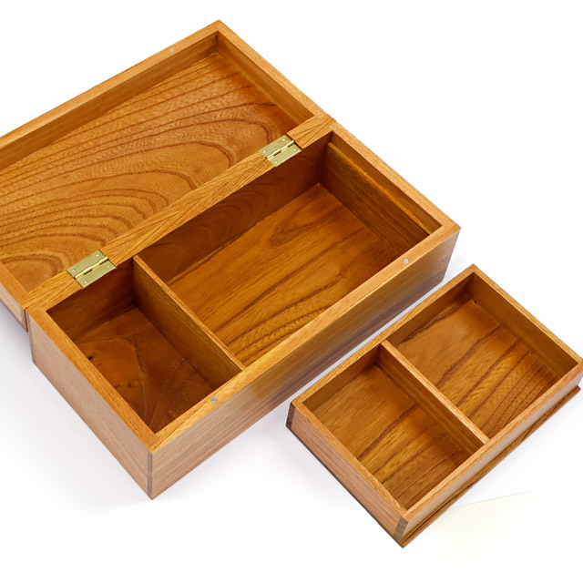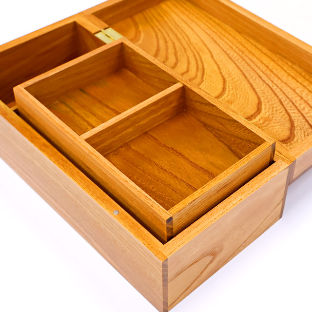天然の木目が美しいケヤキを使用した中箱付きの二段小物箱が初登場!