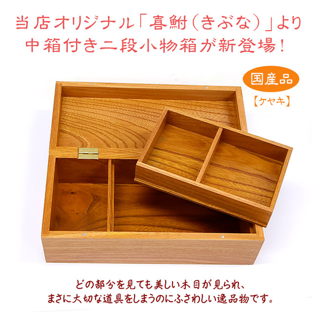 喜鮒 中箱付 二段小物箱【ケヤキ】