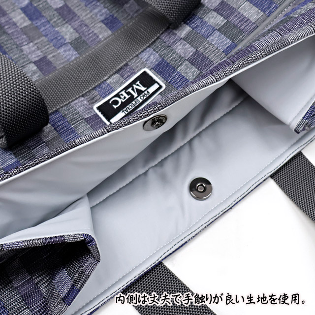 平織調でハリのあるしっかりとした生地とボンディングのような少しふっくらとした素材が合わさっているので、バッグを下に置いた時にも倒れず自立します。