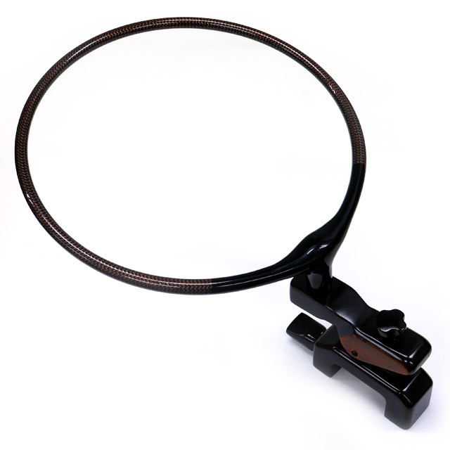 カーボン素材に網目状の模様を施した珍しい玉枠です。