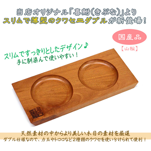 天然木の素材の良さを生かした当店オリジナル「喜鮒(きぶな)」よりすっきりとしたデザインが魅力のスリムで薄型のクワセ皿ダブルが新登場!