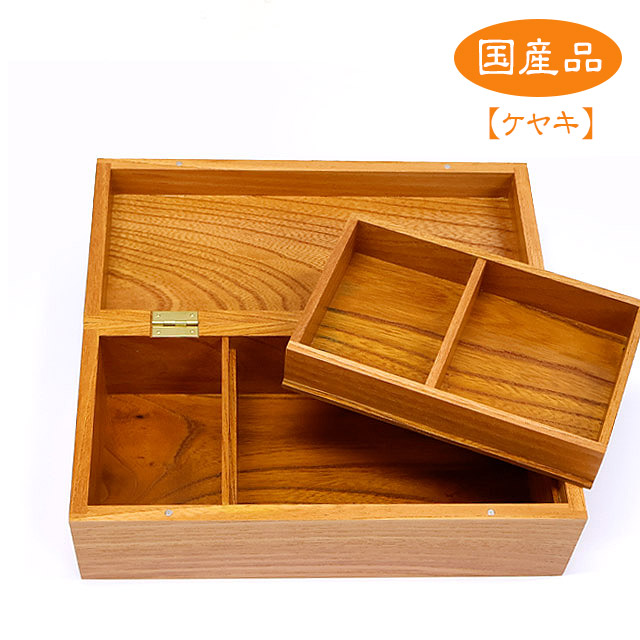 喜鮒 中箱付 二段小物箱【ケヤキ】